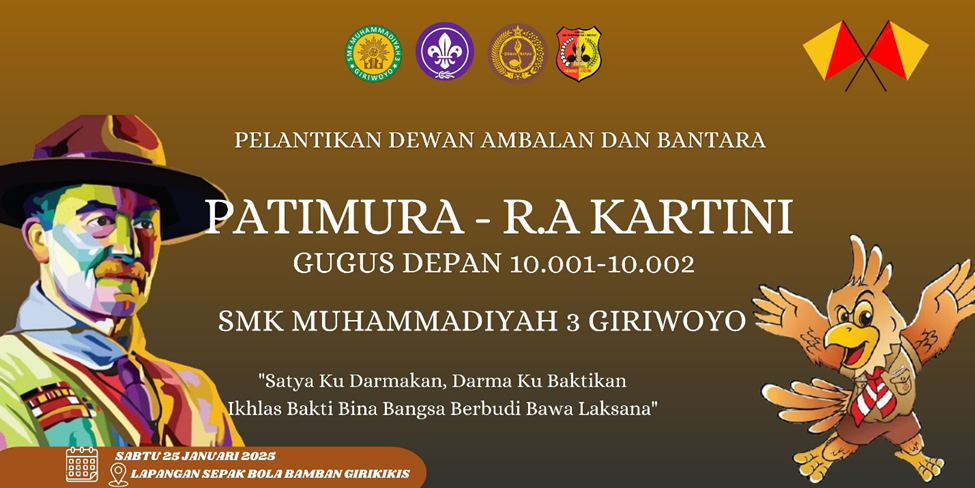 Sabtu, 25 Januari 2025, menjadi momen bersejarah bagi keluarga besar Pramuka SMK Muhammadiyah 3 Giriwoyo. Pada hari itu, telah dilaksanakan acara pelantikan Dewan Ambalan dan Bantara (Patimura - RA. Kartini) di lapangan Bamban, Giriwoyo, Wonogiri.